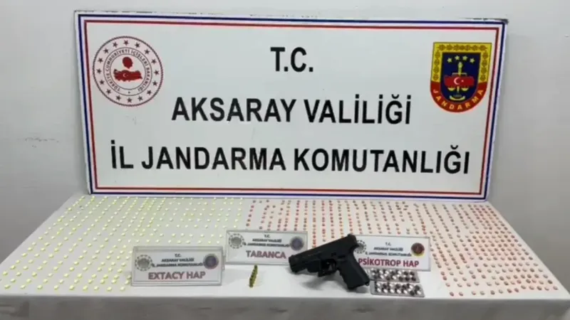Olay Aksaray Merkez ilçede müstakil bir ikamette yaşandı. Alınan bilgilere göre, bir şahsın uyuşturucu ticareti yaptığını öğrenen İl Jandarma Komutanlığı Kaçakçılık ve Organize Suçlarla Mücadele (KOM) Şubesi ekipleri M.S. isimli şüpheliyi Aksaray Cumhuriyet Başsavcılığı koordinesinde takibe aldı. Şahsı ve ikameti teknik ve fiziksel olarak 3 gün boyunca takip eden Jandarma KOM ekipleri yeterli bulgular üzerine operasyon için düğmeye bastı. Müstakil eve yönelik gerçekleştirilen operasyonda M.S. isimli şahıs yakalanarak gözaltına alındı. Jandarma ekipleri müstakil evin bahçesinde yaptığı aramada taşın altındaki bir kutu içerisinde bin 67 adet uyuşturucu hap, evde ise 1 adet ruhsatsız tabanca ile 5 adet tabanca fişeği ele geçirdi. M.S. İl Jandarma Komutanlığındaki işlemlerinin ardından sevk edildiği adli makamlarca tutuklanarak cezaevine kondu.