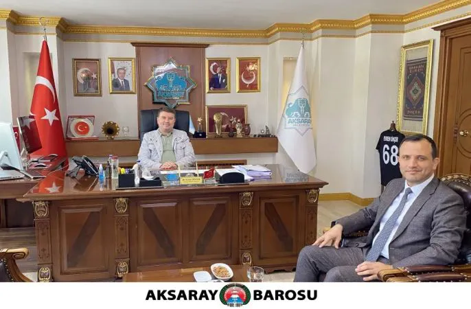 Aksaray Baro Başkanı Av. Ferit KÖSE, Aksaray Belediye Başkanı Sayın Dr. Evren DİNÇER’i makamında ziyaret etti. Baro Başkanı Av. Ferit KÖSE; yerel yönetimlerin önemini bildiklerini belirterek, bu bağlamda hayata geçirilecek projelerde birlikte hareket etmekten mutluluk duyacaklarını söyledi. Baro Başkanı KÖSE; Aksaraylılarımızı hukuksal alanda bilgilendirmek, farkındalık oluşturmak, özellikle kadın hakları ve çocuk haklarını çok fazla önemsediklerini, kırılgan gruplara yönelik hak ihlallerinin önüne geçebilmek adına birçok çalışma yaptıklarını, Belediyemizin bu doğrultuda hayata geçireceği tüm faaliyetlere Aksaray Barosu olarak desteğe hazır olduklarını dile getirdi. Başkan Dr. Evren DİNÇER; Aksaray halkının yararına olacak her türlü projede Aksaray Barosu ile birlik, beraberlik ve dayanışmaya hazır oldukları söyleyerek nazik ziyaretlerinden dolayı Baro Başkanı Av. Ferit KÖSE’ye teşekkür etti.