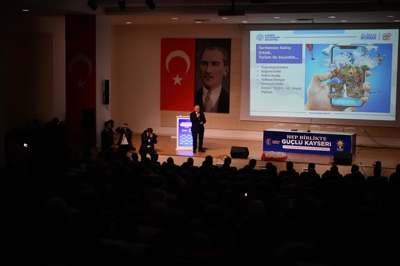Büyükkılıç, Kayseri'nin imarı, ulaşımı, altyapısı, çevre yatırımları, sosyal belediyecilik ve kentsel dönüşüm başta olmak üzere birçok alanda hayata geçirilen çalışmaları parti mensuplarıyla paylaştı.