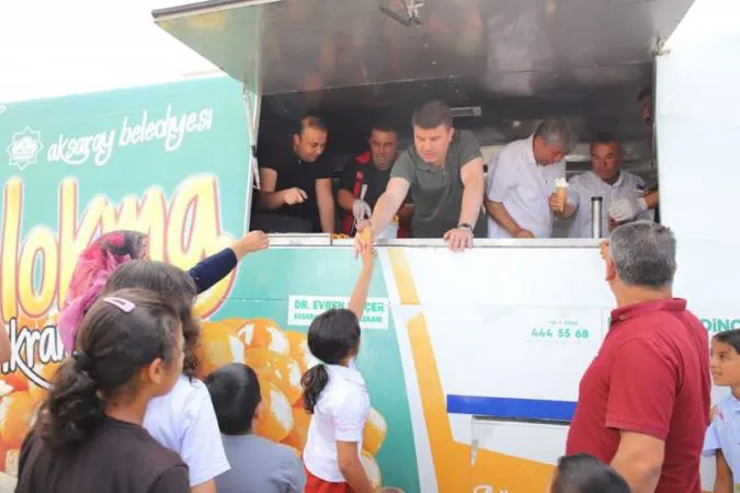 mobil tatlı ve dondurma aracından ikram ettiği tatlı ve dondurma ile çocukların yüzünü güldürdü.