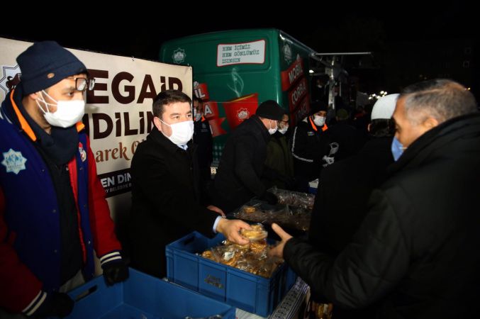 önünde kandil simidi, çorba ve tatlı ikramlarında bulundu.