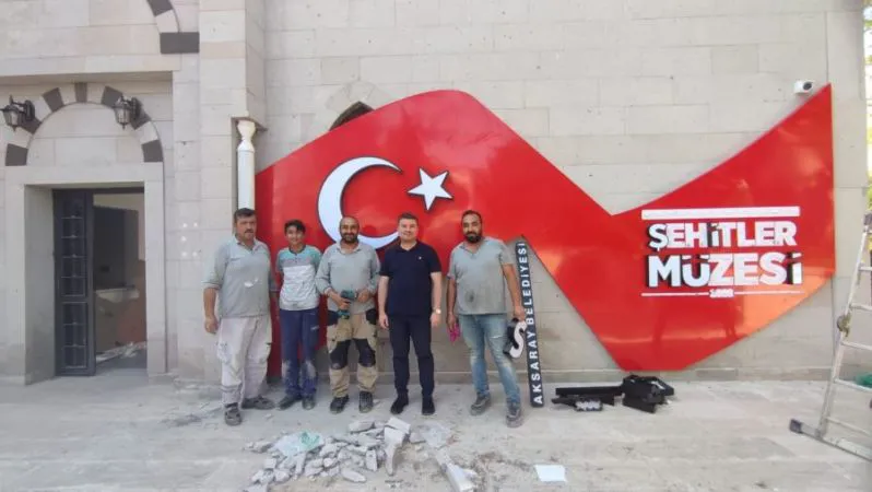 Ervah Kabristanlığı girişinde yer alan Aksaray Belediyesi Şehitlik Müzesinde çalışmalar devam ediyor. Şehitlik Müzesinin giriş kısmında Türk Bayraklı giriş tagı panosunun montajı tamamlandı.