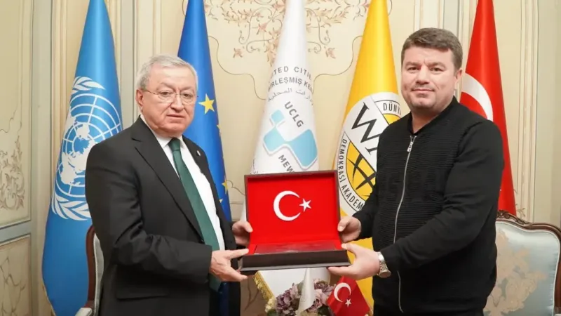 Aksaray’ın tarihsel ve kültürel zenginliklerini uluslararası platformda tanıtmak amacıyla önemli adımlar atan Belediye Başkanı Dr. Evren Dinçer, 27-30 Mayıs 2025 tarihlerinde Aksaray’da gerçekleştirilecek olan UCLG-MEWA Yönetim Kurulu ve Ortak Konsey toplantısı öncesi UCLG-MEWA Genel Sekreteri Mehmet Duman ve Koordinatörü Dr. Ali Murat Duman’ı ziyaret etti. Başkan Dinçer ziyarette, UCLG- MEWA Yönetim Kurulu ve Ortak Konsey toplantısının Aksaray’da yapılmasının şehrin kültürel ve turistik değerlerinin uluslararası arenada tanıtılması için büyük bir fırsat sunduğuna vurgu yaptı.