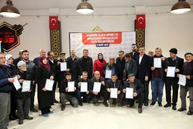 Belediyeye ait Hamidiye Alacada bulunan sosyal tesislerde düzenlenen tapu teslim törenine Milletvekilleri Cengiz Aydoğdu ve Hüseyin Altınsoy, AK Parti İl Başkanı Hamza Aktürk, Merkez İlçe Başkanı Muammer Gür, teşkilat mensupları ve çok sayıda mahalle sakini katıldı.