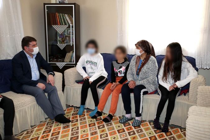 ve şehit ailelerini evlerinde ziyaret ederek ihtiyaçlarını karşılıyor.
