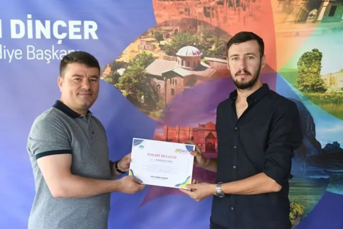 personellere başarı belgesi takdiminde bulundu. Personeller Belediye Başkanı Dr. Evren Dinçer’e