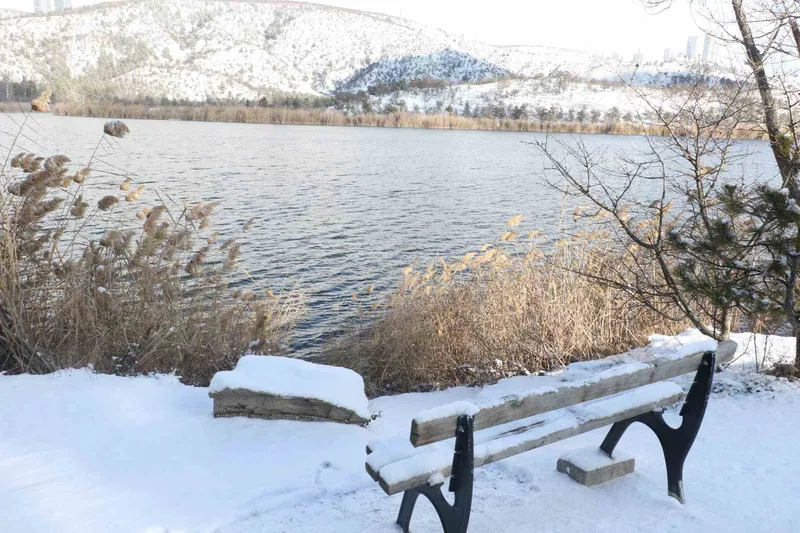 Orta Doğu Teknik Üniversitesi (ODTÜ) arazisinde yer alan Eymir Gölü, kar yağışının ardından adeta bir kartpostal görüntüsüne büründü. Yeni yıl sabahının ilk ışıklarıyla birlikte gölü ziyaret eden vatandaşlar, fotoğraf çekti, koşu yaptı ve etraftaki kafelerde sıcak içeceklerini yudumlayarak karın tadını çıkardı. Turistler, kar yağışının devam etmesini diledi.