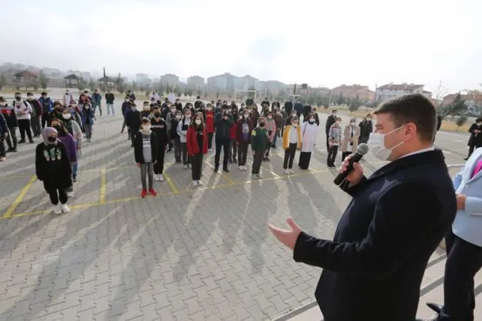 Salgın nedeniyle ülke olarak zorlu bir süreçten geçiyoruz. Ancak bizler halkımızın her kesimine kesintisiz olarak hizmet etmeye devam ediyoruz. Sizlere tavsiyem öğretmenlerinizin sözünden çıkmayın derslerinize iyi çalışın. Hepinize iyi dersler diliyorum” dedi.