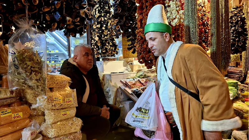 Dönmez, üzerindeki yöresel kıyafetle esnafı tek tek gezerek ahilik kültürünü ve geleneğini birebir anlattı.