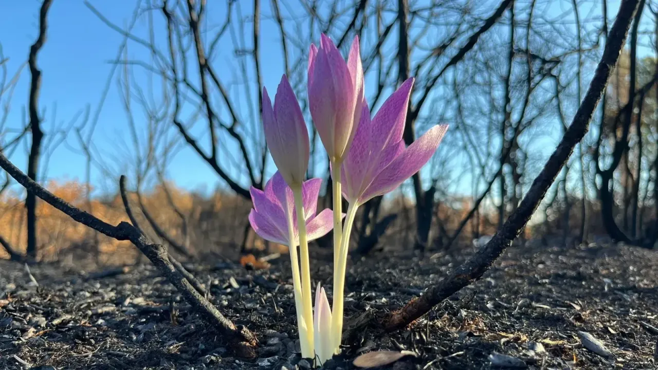 Bursa’nın Yenişehir ilçesine bağlı Marmaracık Köyü’nde geçtiğimiz günlerde çıkan yangının ardından ormanlık alan büyük zarar görmüştü. Ancak yangının izlerini taşıyan bu alanda açan Güz Çiğdemi, doğanın yeniden doğuşunu simgeleyen etkileyici bir görüntü sundu.