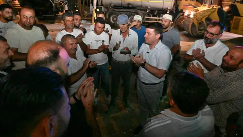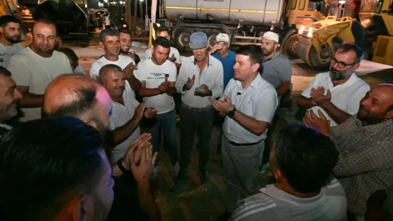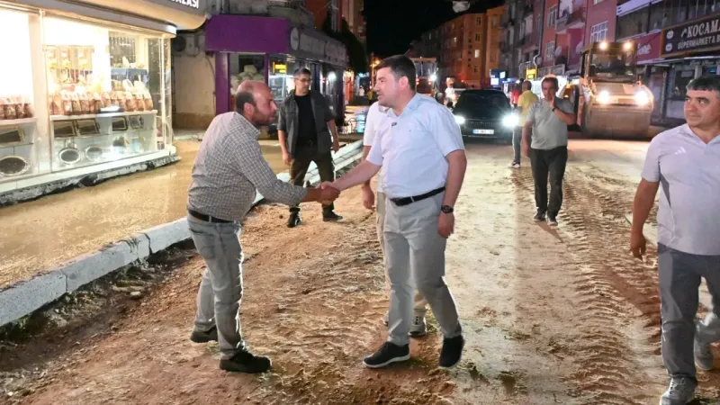 Belediye Başkanı Dr. Evren Dinçer, asfalt seriminin son gününde çalışmaları gece vardiyasında yerinde takip etti. Bölge esnafı ve vatandaşlarla görüşerek süreci değerlendiren Dinçer, çalışan personele de kolaylıklar diledi.