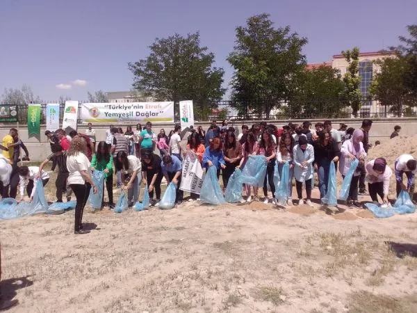 Erozyonla mücadele ve Çevreye duyarlılığa dikkat çekmek için Çeşitli Okullardan Torbalarla getirilen topraklar park yapılmasını istenilen Aksaray Anadolu İmam Hatip Okulu önündeki Boşluğa dökülerek kararlılık sergilendi.