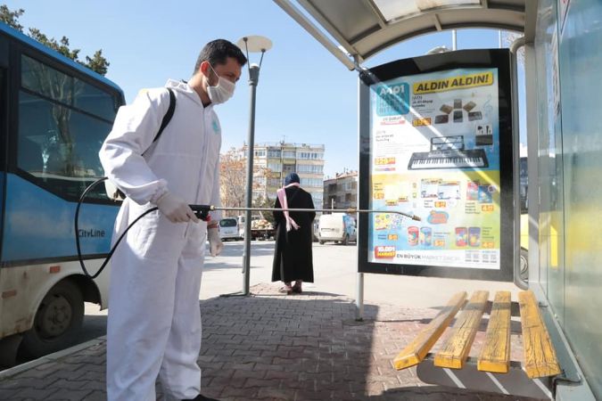 merkezleri, şehirler arası otobüs terminali, eğitim kurumları, camiler ve toplu kullanım alanları sık sık dezenfekte ediliyor. Salgının yayılımcı etkisini ortadan kaldırmak üzere yürütülen çalışmalar kapsamında bugün şehir içi toplu taşımada kullanılan araçlar dezenfekte edildi.