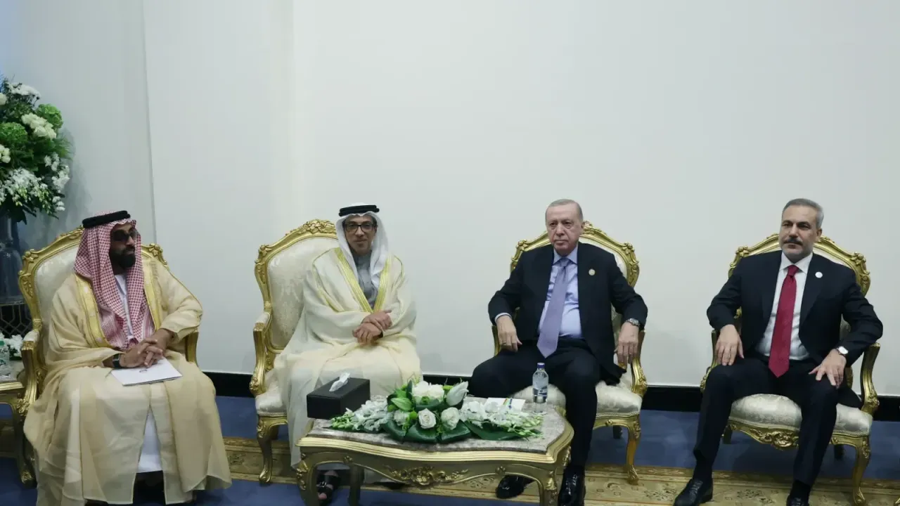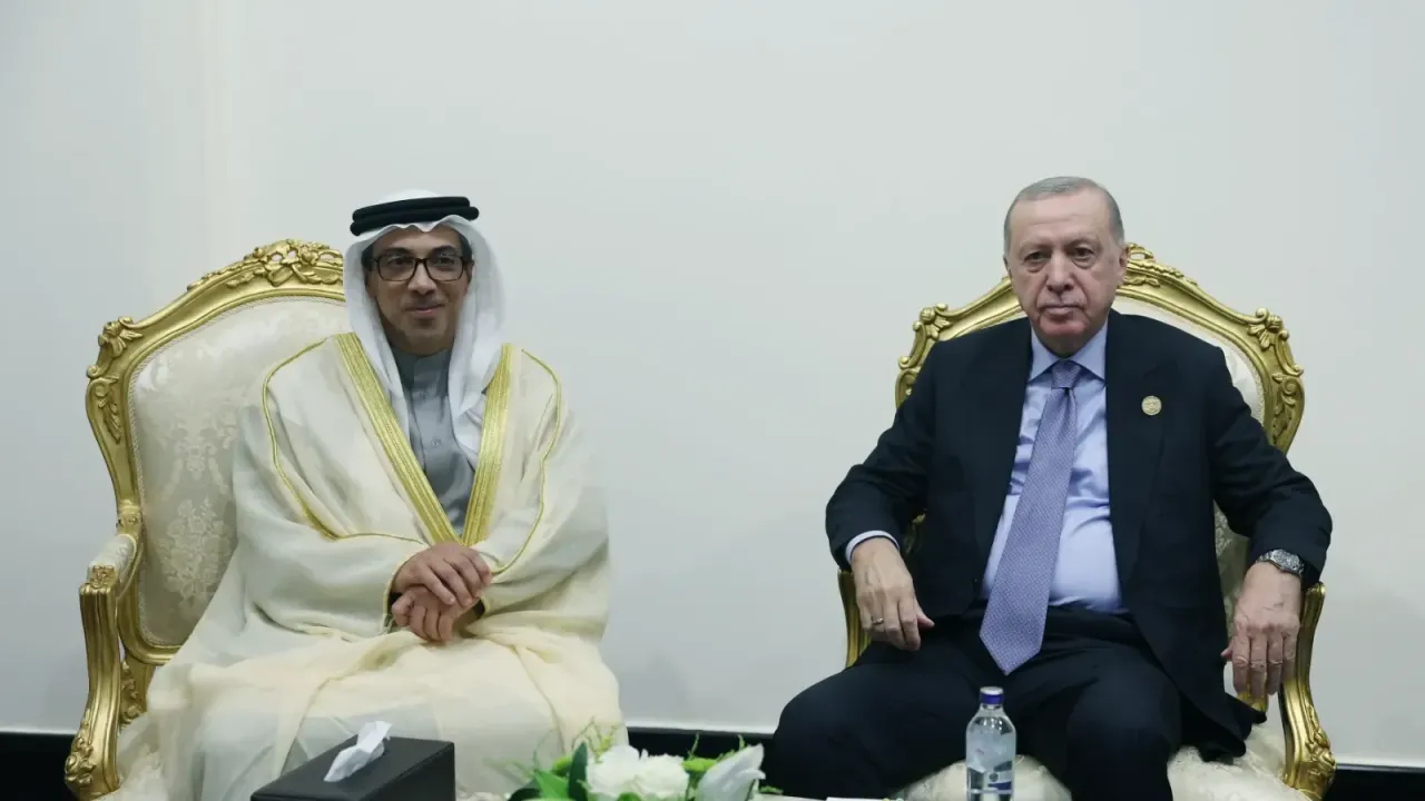 Gazze konulu Barış Zirvesi’ne katılmak üzere Mısır’da bulunan Cumhurbaşkanı Recep Tayyip Erdoğan, temaslarına başladı. Zirve öncesinde Birleşik Arap Emirlikleri (BAE) Devlet Başkan Yardımcısı Şeyh Mansur bin Zayid Al Nahyan ile bir araya geldi.