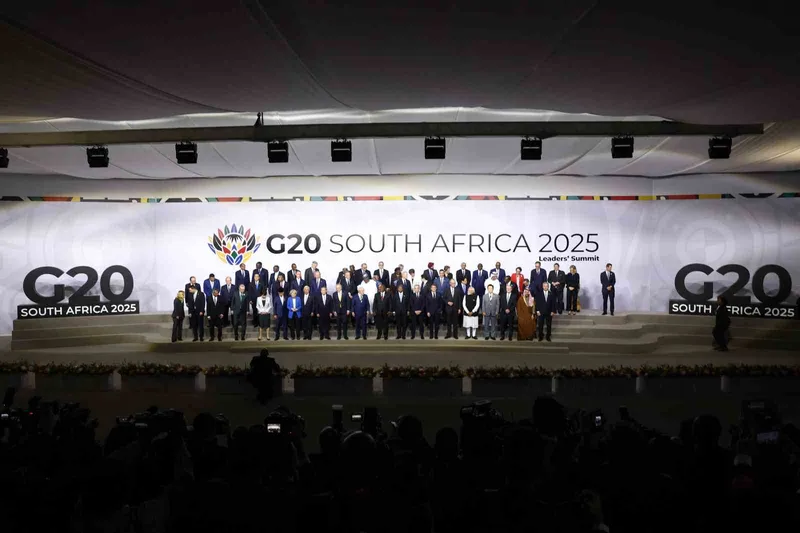 Cumhurbaşkanı Recep Tayyip Erdoğan, Güney Afrika'nın Johannesburg kentinde düzenlenen G20 Liderler Zirvesi kapsamında aile fotoğrafı çekimine katıldı. Zirvenin ana teması olan "Dayanışma, Eşitlik, Sürdürülebilirlik" çerçevesinde bir araya gelen liderler, Expo Centre Nasrec'te kurulan özel platformda aile fotoğrafı için buluştu.