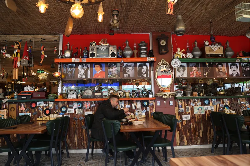 Restoranda sergilenen piyano, gramofon, kukla, Yeşilçam afişleri gibi farklı dönemlere ait eşyalar, müşterilerin büyük ilgisini çekiyor. Mustafa Laçin, gençlik yıllarında dedesinin hediye ettiği sefer tasıyla eski eşyalara ilgisinin başladığını ve zaman içinde bu tutkunun büyüdüğünü söylüyor.