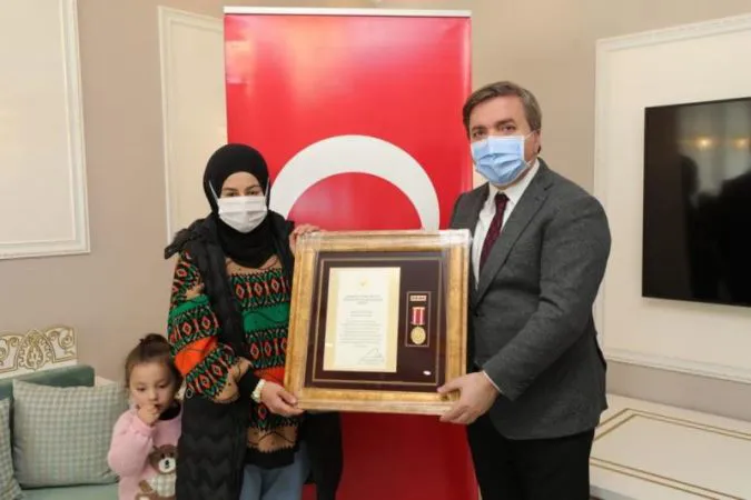 Süreyya Süslü ile kızı Miray Süslü’ye gönderilen Devlet Övünç Madalyası, Aksaray Valisi Hamza Aydoğdu tarafından