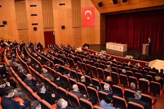 Toplantıda konuşan İl Müftüsü Hasan Hüseyin Güller, yaklaşık bir yıldır dünya genelinde baş gösteren Covid 19 salgını sebebiyle zorlu bir süreç ile karşı karşıya kaldıklarını ifade ederek “Salgının il sürecinde Camilerimiz bir süre toplu ibarete kapatıldı. Tüm eğitim öğretim kurumlarında olduğu gibi kuran kurslarımızdaki eğitime de ara verilmişti. Bu dönemde müftülüğümüz bünyesinde din görevlilerimiz vefa destek gruplarında aktif görev alarak halkımıza hizmet ettiler. Camilerimizde maske, mesafe ve hijyen kurallarına bağlı kalmak şartıyla kademeli olarak ibatede