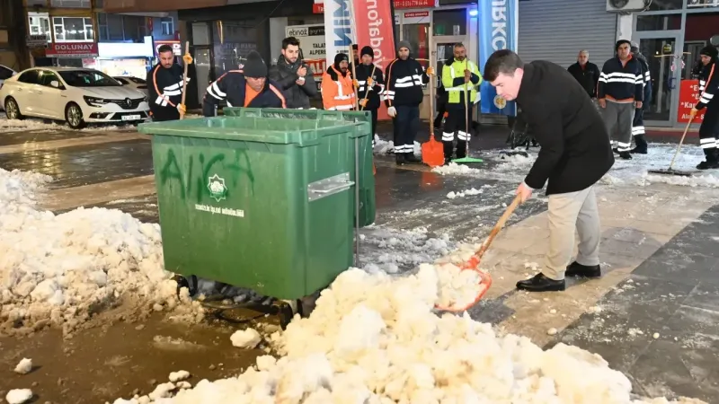 Belediye Başkanı Dinçer, gece sıfırın altında 3 dereceye düşen soğuk havada süren kar temizliği çalışmalarını yakından inceledi. Başkan Dinçer, sahada çalışan personellere kolaylıklar dileyerek; “Soğuğa rağmen fedakârca çalışan personellerimiz, karla mücadelede gerçekten takdire şayan bir çalışma sergiliyor. Vatandaşlarımızın güvenliği için gece gündüz demeden çalışan ekip arkadaşlarıma teşekkür ediyorum” dedi.