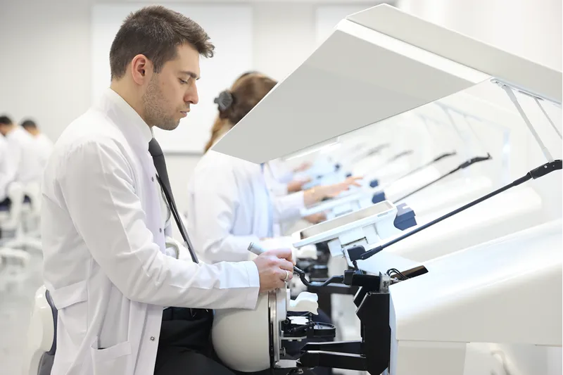 Doku, kemik, diş sertliği ve oluşabilecek komplikasyonları, insanda olduğu gibi birebir yansıtan yüksek gerçeklikli simülatörlerle uygulama yapan öğrenciler, mesleki donanımını ilerletiyor. Merkez sayesinde öz güvenini de artıran öğrenciler, gerçek hastalardaki uygulamalarında yabancılık çekmeden müdahale becerisini ve tedavinin başarı oranını da üst seviyeye çıkarıyor.