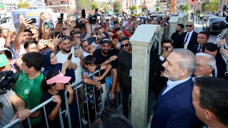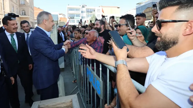 Valilik önünde toplanan bazı vatandaşlar, Bakan Fidan ile fotoğraf çektirmek istediklerini belirterek kendisini bariyerlerin önüne davet etti.