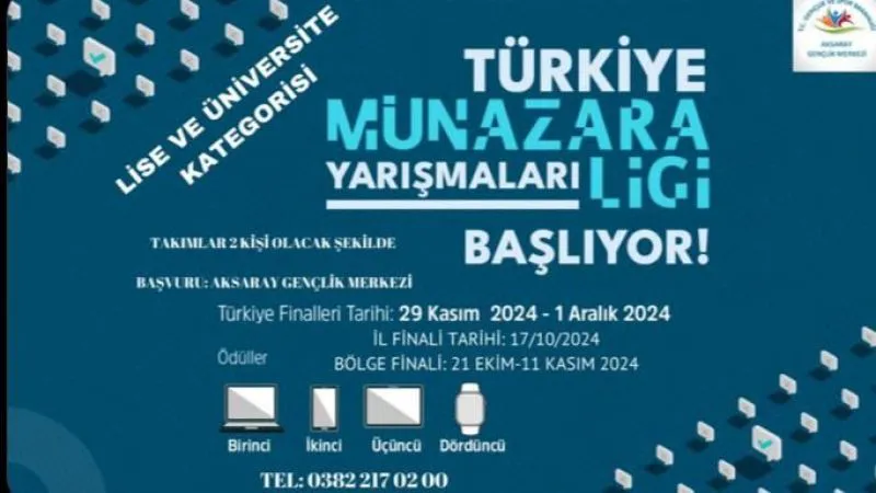 Münazara Ligi’ne katılmak isteyen gençler, başvurularını Aksaray Gençlik Merkezi’nden yapabilecekler. Münazara, gençlerin eleştirel düşünme, iletişim ve tartışma becerilerini geliştirmeye yönelik bir etkinlik olarak öne çıkıyor. Farklı konularda karşılıklı fikir alışverişi yaparak hem kendilerini geliştirme hem de sosyal çevrelerini genişletme fırsatı bulacaklar.