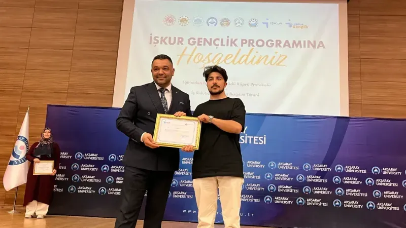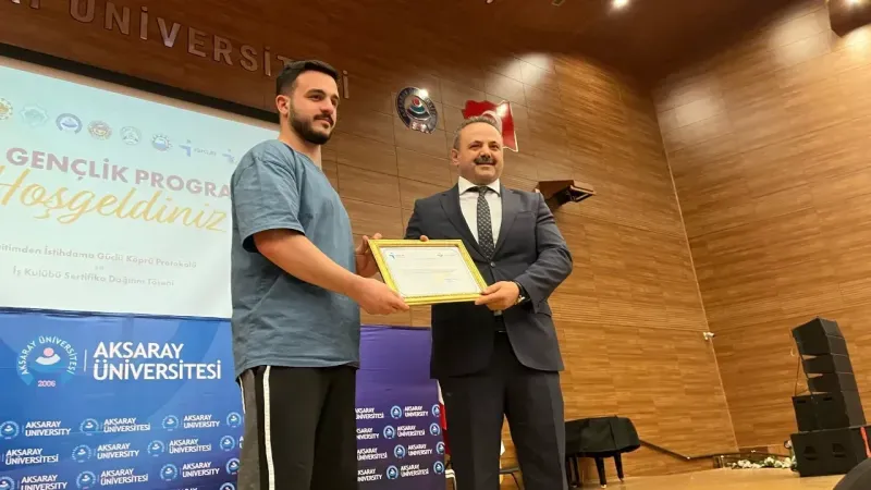 Programda konuşan Aksaray Valisi Mehmet Ali Kumbuzoğlu ise gençlerin istihdamına yönelik yapılan projeleri desteklediklerini belirterek, “Sizleri burada görmek büyük bir heyecan veriyor. Aksaray büyüyen, gelişen bir şehir ve sizler de bu değişimin bir parçasısınız. Üniversite yıllarınızı sadece derslerle değil, iş dünyasını tanıyarak, kendinizi geliştirerek değerlendirin” şeklinde konuştu.Program, katılımcılara sertifikalarının verilmesiyle sona erdi.