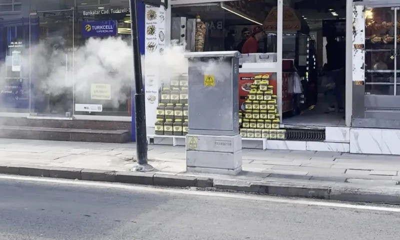 Yangın, Bankalar Caddesi üzerindeki kaldırımda bulunan elektrik panosunda çıktı. Edinilen bilgiye göre, elektrik trafosunda şase nedeniyle dumanlar çıkmaya başladı. Dumanları fark edip paniğe kapılan vatandaşlar durumu hemen 112 Acil Çağrı Merkezi’ne bildirdi. İhbar üzerine olay yerine itfaiye ve MEDAŞ ekipleri sevk edildi. Yangın mahalline gelen itfaiye ekipleri trafodaki yangını köpük sıkarak söndürdü. İtfaiyenin yaptığı incelemede yangının şase sonucu çıktığı belirlenirken, yangının sönmesiyle vatandaşlar da rahat bir nefes aldı.