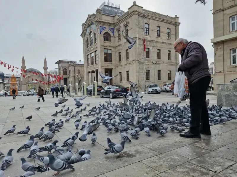Aksaray'da kar yağışının ardından 15 Temmuz Milli İrade Meydanının sembolü haline gelen güvercinler yiyecek bulmakta zorlanmaya başladı. Yem satıcılarının da tezgah açmaması vatandaşların kuşlara olan ilgisini azaltırken, güvercinleri besleyen Emekli Müzik Öğretmeni Caner Tekeli (66) yürekleri ısıtan bir akım başlatarak vatandaşlara çağrıda bulundu. Aktardan aldığı buğday ve arpa karışımı yem ile kuşları besleyen Emekli Öğretmen Tekeli, "Çarşıda işlerim vardı, onları halledip evime giderken meydanda kuşların yiyecek bulamayışı dikkatimi çekti. Aksaraylılar olarak alıştığımız bir durumun dışına çıktığımızı fark ettim. Normalde burada yem satan kardeşlerimiz olurdu, onlardan yem alıp sürekli kuşları besleyen vatandaşlarımız olurdu. Aslında dalgın yürüyordum ama kuşların bu durumu birden dikkatimi çekti. Evime yaptığım alışverişten onlarda nasibini alsın diyerek aktardan onlara yem aldım. İçim el vermedi onları çaresiz bırakmaya, her yer kar her yer betonken onların aç kalmasına gönlüm razı gelmedi. Dakikalarca onları besledim. Beslerken izlemek bile dünyanın en huzurlu anıydı benim için, çok mutlu oldum. Vatandaşlarımızdan duyarlı olmalarını isterim. Bizler sıcacık evimize gidip vakit geçirirken sokak hayvanları ve sevimli dostlarımız soğuk havalarla mücadele ediyor. Onları yalnız bırakmayalım. Dünya hepimizin ortak yaşam alanı, ortaklarımızı çaresiz bırakmayalım" diye konuştu.