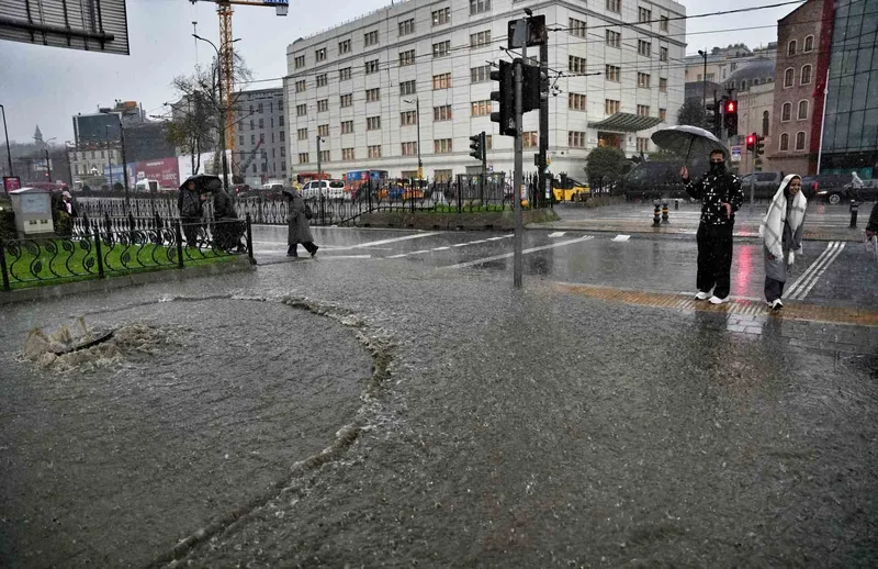 Yolun karşısına geçmeye çalışan vatandaşlar ise ıslanmamak için büyük çaba sarf etti. Su baskını, hem araç trafiğini hem de yaya hareketliliğini ciddi şekilde aksattı.