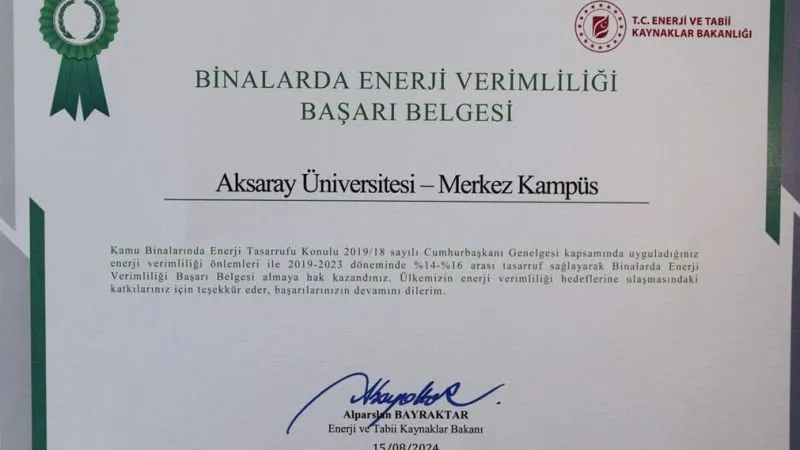 Enerji ve Tabii Kaynaklar Bakanı Alparslan Bayraktar tarafından imzalanan belge, ASÜ’nün bu alandaki başarısının resmi bir şekilde tescillenmesi anlamına geliyor.