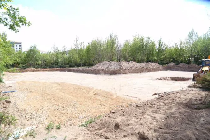 Projenin hayata geçeceği noktada temel kazıları iş makinaları ile yapılarak