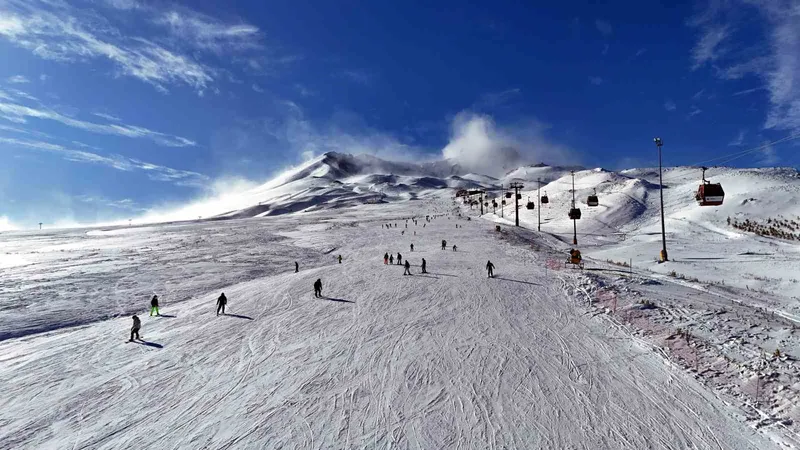 Erciyes Kayak Merkezi, yeni yıla tam kapasiteyle giriyor. Türkiye'nin önemli kış turizmi merkezlerinden biri olan Erciyes, yılın son gününde 2026'yı karşılamak isteyen kayak severlerin akınına uğradı. Yılbaşı döneminde tüm otellerin dolduğu merkez, misafirlerine unutulmaz bir deneyim sunmaya hazırlanıyor.