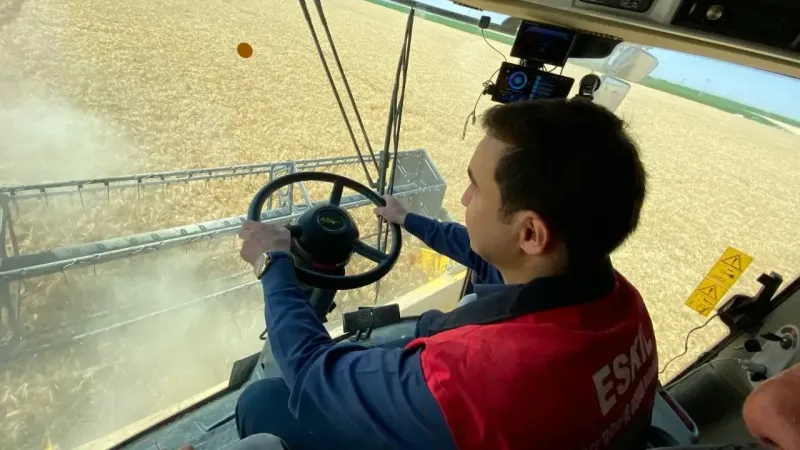 Eskil’de binlerce dönümlük alanda yapılan buğday hasadında üreticiler, bu yılki verimden memnun. İlçe Kaymakamı Fuat Yurddaş ve Eskil Ziraat Odası Başkanı Gazi Mutlu, hasat yapılan tarlaları ziyaret ederek çiftçilere kolaylıklar diledi, üreticilerin taleplerini dinledi. Ziyaret sırasında Kaymakam Yurddaş kısa süreliğine biçerdöverin direksiyonuna geçerek buğday biçti.