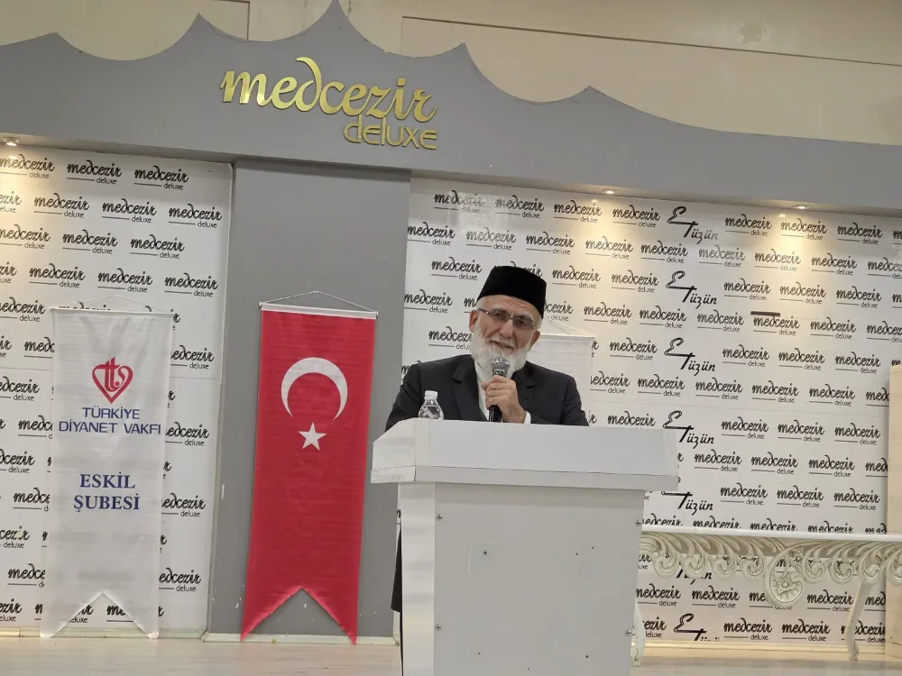 Eskil İlçe Müftülüğü tarafından düzenlenen etkinlikte ilçe halkı, ilahiyatçı-yazar Hasan Basri Balcı’nın katılımıyla gerçekleştirilen “Hz. Peygamber ve Aile Ahlakı” konulu sohbette buluştu.