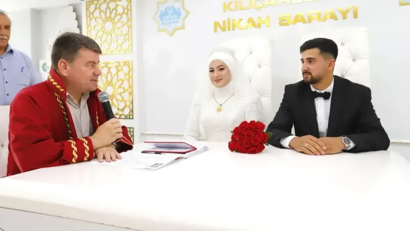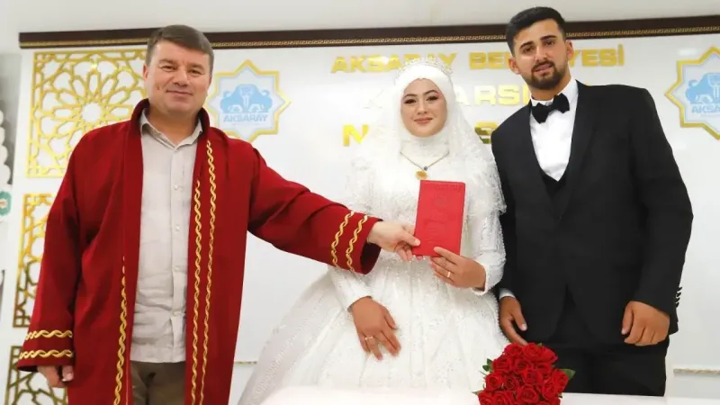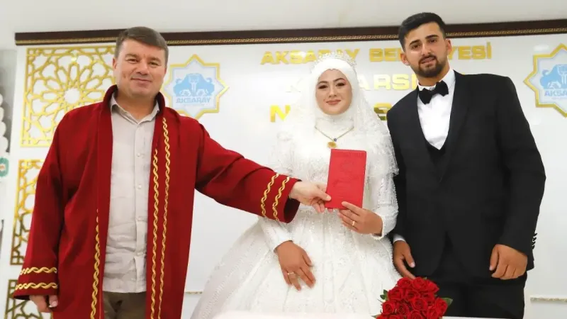Genç çiftin nikah akdini Aksaray Belediye Başkanı Dr. Evren Dinçer gerçekleştirdi. Başkan Dinçer, evlilik yolunda ilk adımlarını atan çifte ömür boyu mutluluk temennisinde bulundu.