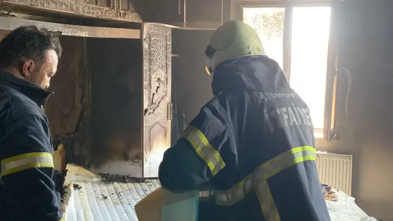 Aksaray Hürriyet Mahallesi 4874. Sokak üzerinde bulunan bir evin yatak odasında, bilinmeyen bir sebepten dolayı yangın çıktı.