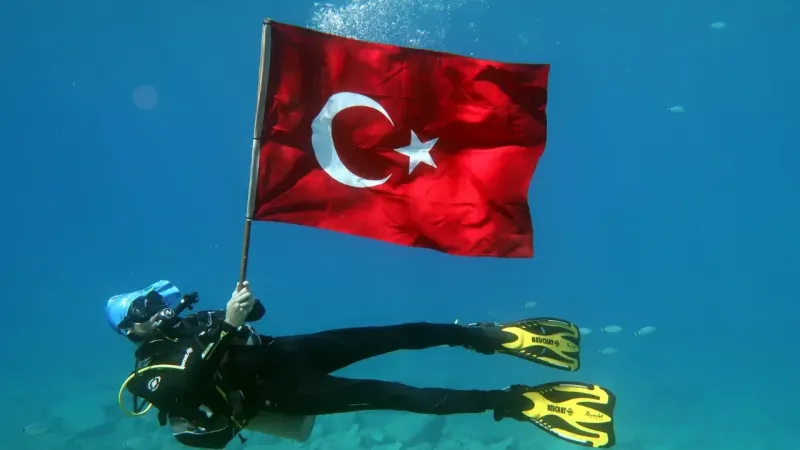 Etkinlik kapsamında Fethiyeli dalgıçlar Dalyan Koyu’nda 8 metre derinliğe dalış yaptı ve burada Türk bayrağını açıp dalgalandırdı. Su altındaki kutlama, çevredeki canlıların arasında gerçekleştirildi.