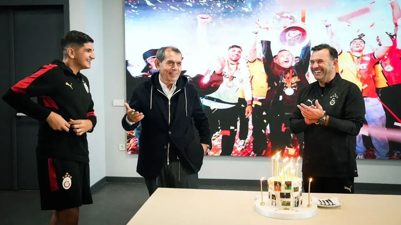Bugün doğum günü olan teknik direktör Okan Buruk için, tesislerde sürpriz bir kutlama yapıldı. Galatasaray Başkanı Dursun Özbek, teknik ekip ve futbolcuların katıldığı etkinlikte, Buruk doğum günü pastasını keserken tebrikleri de kabul etti.