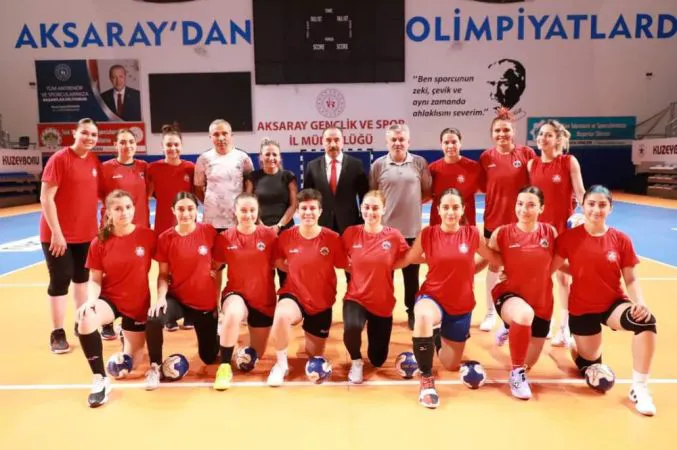 Aksaray Gençlik ve Spor İl Müdürü Aslan Yıldız, Aksaray Belediyespor Hentbol takımını desteklemek ve başarı dilemek amacıyla antrenmanlarını ziyaret etti. Kadınlar Hentbol Süper Ligi’nde Aksaray’ı temsil edecek olan takıma Cumartesi günü Tekirdağ ile oynayacağı maç öncesi moral veren İl Müdürü Yıldız, sporculara başarılar diledi. Kulüp yetkilileri ve oyuncular da ziyaretten duydukları memnuniyeti dile getirerek, desteklerinden dolayı teşekkür ettiler. Aksaray Belediyespor Hentbol takımı, tüm şehir halkının desteğiyle büyük bir azim ve heyecanla mücadelesine devam ediyor.
