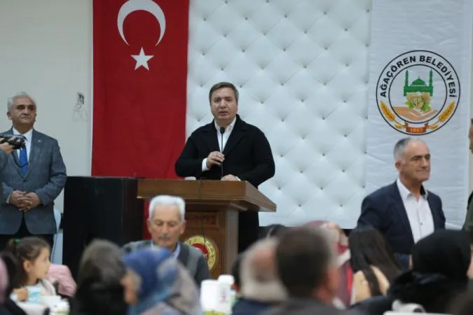 Ağaçören de olmaktan duyduğu memnuniyeti ifade eden Vali Aydoğdu: “Bizi gönül sofranıza davet ettiğiniz misafir ettiğiniz için hepinize teşekkür ediyorum. Hepimizin malumu yaşanan deprem afeti nedeniyle bölgeden ilimizde misafir ettiğimiz vatandaşlarımız da bizimle, bizim milletimiz birbirine kenetlenerek, birbirine sarılarak birbirinin acılarını sararak Allah’ın izni ile ayağa kalmayı bilen nadir milletlerden biridir. Allah birliğimizi, dirliğimizi bozmasın” dedi.