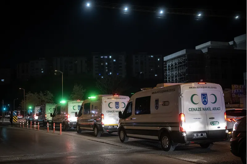 Ankara Adli Tıp Kurumunda işlemlerinin tamamlanmasının ardından şehitlerin naaşları, Mürted Hava Üssü'nde düzenlenecek askeri tören alanına götürülmek üzere yola çıktı.