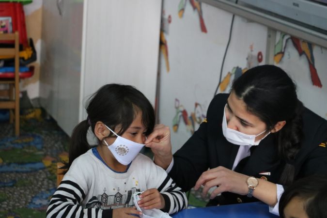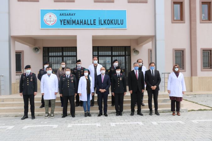 Covid-19 nedeniyle öğrencilere sosyal mesafe, maske kullanımı konularında bilgilendirme yapılarak İl Jandarma Komutanlığı farkındalık kapsamında özel olarak yaptırılan maskeler dağıtılarak, okul müdürü Kadir AKBAŞ ve okulda görevli diğer öğretmenler ile sohbet edildi.