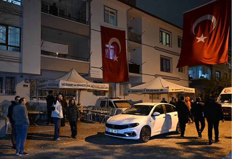 Kandemir'in Yenimahalle ilçesinde bulunan baba evinde taziye çadırı kuruldu, Türk bayrakları asıldı.