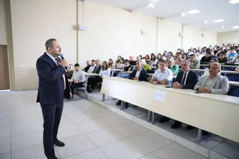 Programda Dekan Yardımcısı Dr. Öğr. Üyesi Deniz Özkan Fakültedeki, Başhekim Doç. Dr. Onur Karaca da Aksaray Eğitim ve Araştırma Hastanesindeki çalışmalara ilişkin bilgiler verdi. Açılış konuşmalarının ardından LCW Global e-Ticaret Genel Müdürü Ömer Barbaros Yiş “ İyilik Yolunda” isimli bir sunum yaptı. Ailesinde ağabeyinin tıpçı olduğunu ve bu nedenle tıp öğrencilerini çok iyi anlayabildiğini söyleyen Yiş, bireylerin mesleki yaşamları içinde, kendi alanlarında pek çok iyi çalışma üretebileceğini ancak esas iyinin insanlara faydalı olmak olduğunu iletti. İyilik ve insan eksenli düşünmek gerektiğinden söz eden Ömer Barbaros Yiş, “İnsan, başka insanların hayatına dokundukça ne kadar değerli bir iş yaptığını anlayabiliyor. Hekimler zaten iyilik yapma fırsatının tam merkezindeler. İnşallah öğrencilerimiz en güzel şekilde insanlığa hizmet edecekler” dedi.