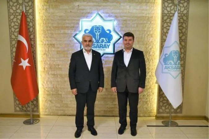 Aksaray Belediyesi hizmet binasında Hüda Par Genel Başkanı ve beraberindeki misafirlerini
