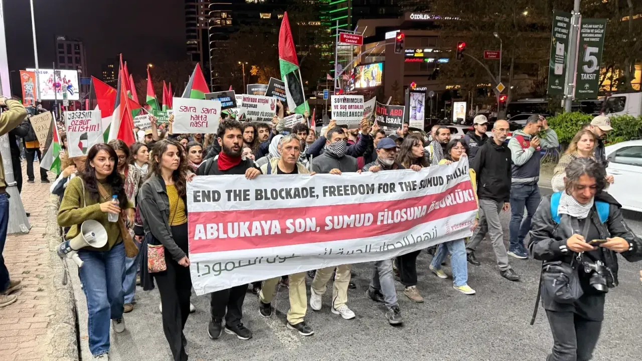 İsrail'in, Gazze'ye insani yardım taşıyan Küresel Sumud Filosu'na (GSF) müdahale ederek gemilere el koyması ve aktivistleri gözaltına alması, İstanbul'daki İsrail Başkonsolosluğu önünde protesto edildi. Tunus'tan yola çıkan ve Gazze'ye yardım ulaştırmayı amaçlayan filosuna yapılan baskına tepkiler sürüyor.