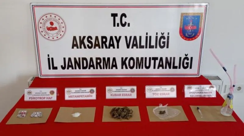 Aksaray’da durumundan şüphelenilen şahsın üzerinde arama yapan jandarma ekipleri, 4 ayrı uyuşturucu madde ve kullanma aparatı ele geçirdi.