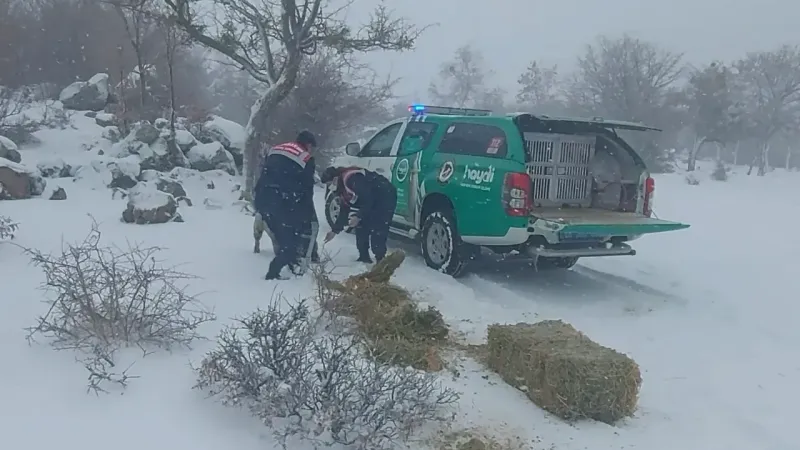 Özellikle yüksek kesimlerde etkili olan kar yağışı ve hava sıcaklığının gece -7’lere kadar düştüğü Aksaray’da jandarma ekipleri dağda bayırda hayvanları yalnız bırakmıyor. Hasandağı etekleri ve ormanlık alan başta olmak üzere ilçe, belde ve köy yolları ile şehir genelindeki arazilerde devriye atan İl Jandarma Komutanlığı Çevre, Doğa ve Hayvanları Koruma Timleri, kar yağışı ve soğuk hava şartlarında yem bulmakta zorluk çeken hayvanlara yem veriyor. Yaban hayatının korunması kapsamında yabani hayvanları da düşünen jandarma ekipleri balya samanı, buğday yemi ve mama bırakıldı. Dağda jandarma ekiplerini gören köpekler ile jandarma ekiplerinin çalışması yürekleri ısıtırken, İl Jandarma Komutanlığından yapılan yazılı açıklamada, “Her can bizim için çok değerli. Zorlu kış şartlarında yiyecek bulmakta zorlanan doğadaki dostlarımız için yem ve su bırakma faaliyetlerimize devam ediyoruz" denildi.