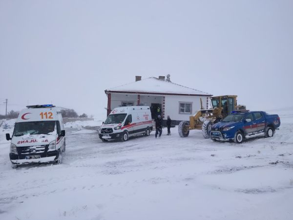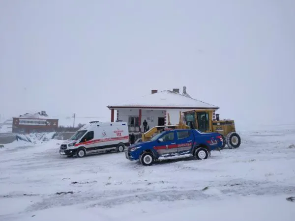 Tipi nedeniyle kapanan köy yolunu greyderle açtıran Jandarma ekipleri yarı baygın halde